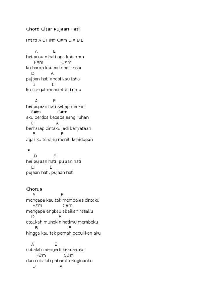 INDOTRENDSID - Lirik dan chord gitar lagu Pujaan Hati dari Kangen Band banyak dicover di YouTube dan TikTok. A Fm Aku yang telah lelap sendiri D E Terlelap sampai tak sadar diri A Fm. Hei pujaan hati apa kabarmu ku harap kau baik-baik saja.